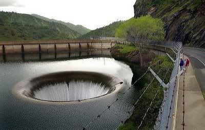 Su boca se eleva a una altura en la que el nivel del agua comenzaría a ser peligrosa de forma que cuando la rebasa, cae hacia su interior.