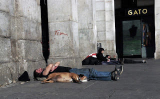 El perro miró de reojo la posición del gato antes de dormise al sol en aquella calle de algún lugar .